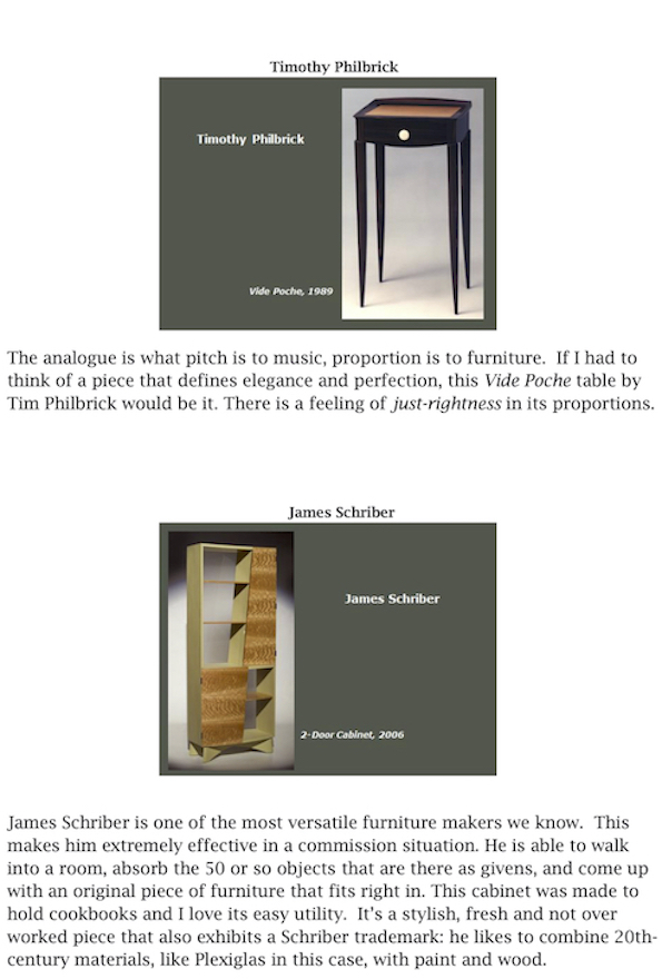 In the exhibition proposal, CONNECTION, American Studio Furniture