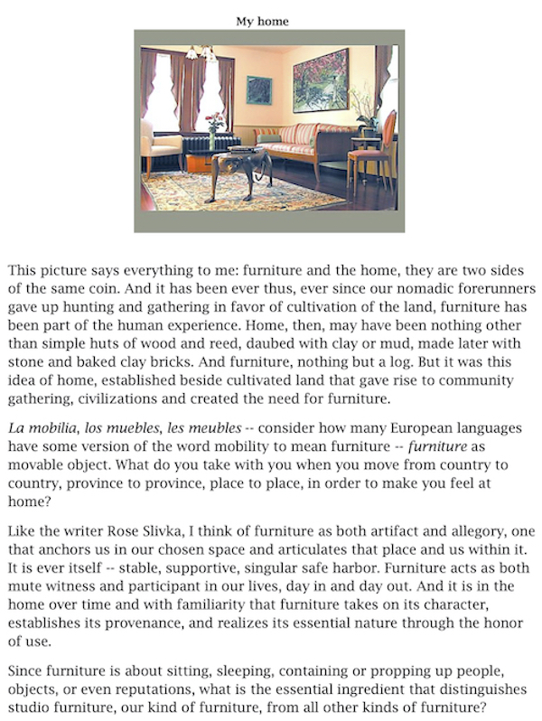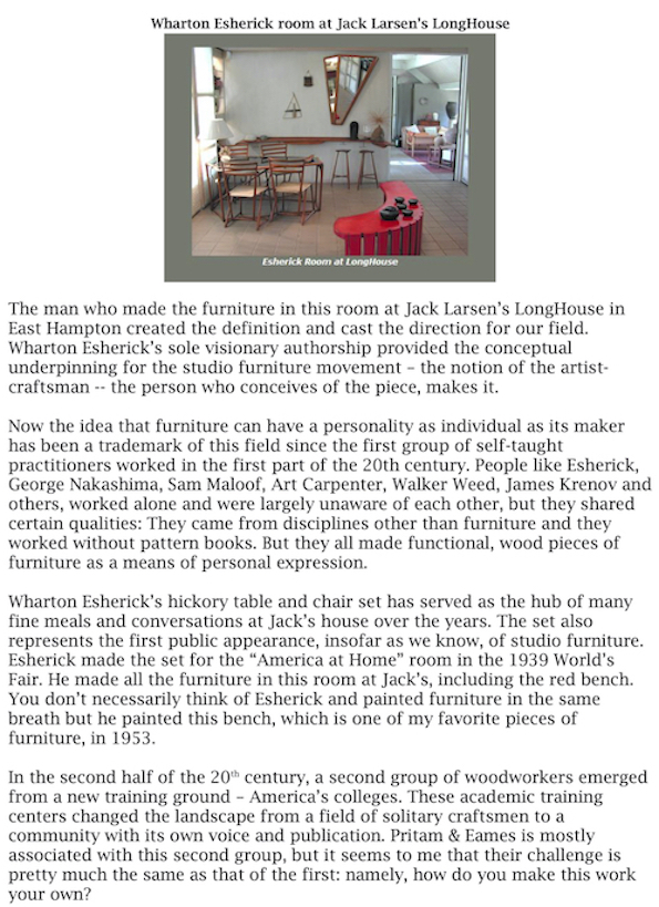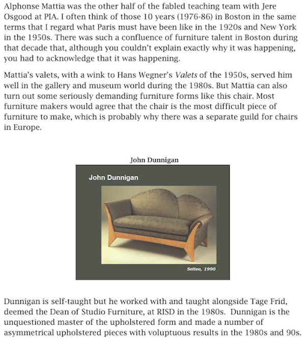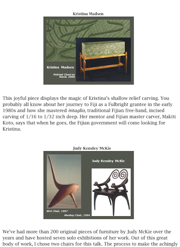 Notes from Andrew Glasgow, past Director of The Furniture Society