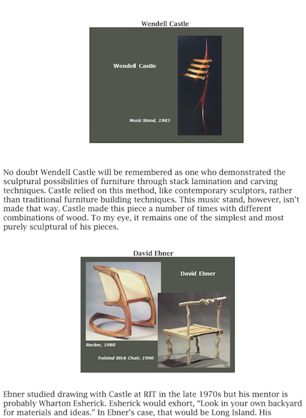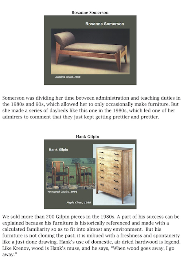 Many have gone on to be noted writers and teachers in the field of woodworking.