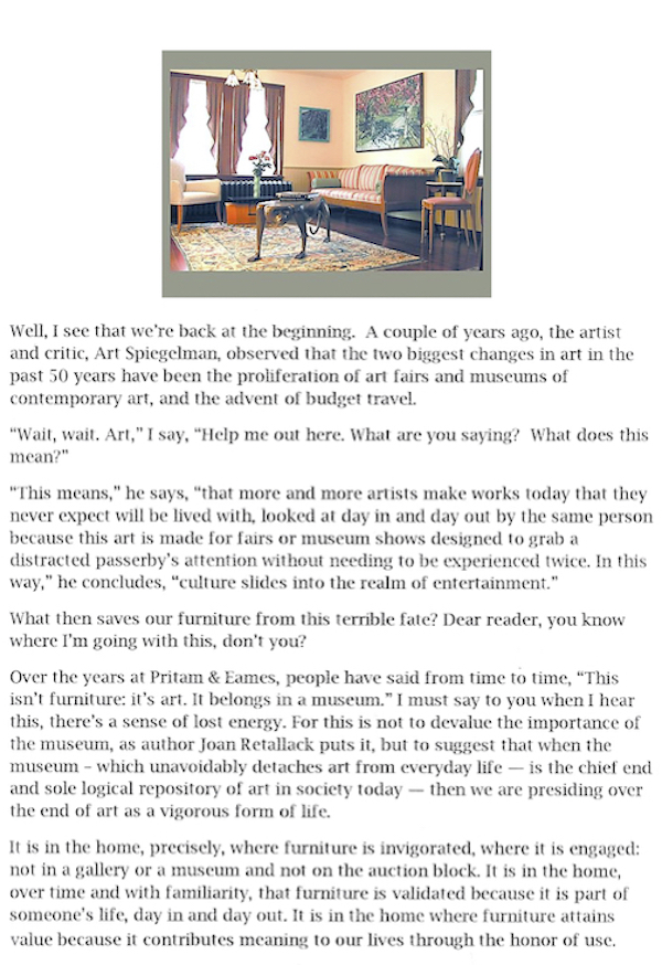 This book is about a lot of things, chief of which is that the personal explorations articulated here comprise a deeply humanist introduction to what might be called an 'auteur' furniture