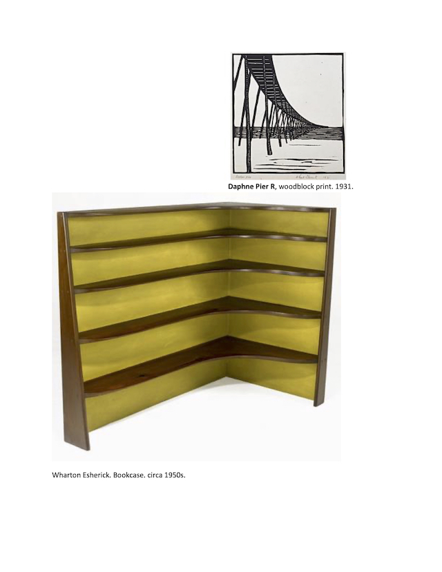 Wharton Esherick, (1887 –1970), was an American artist and sculptor who worked in the early to mid-20th-century. He is generally acknowledged as the visionary author of the American studio furniture movement because his work and his life embodied the notion of the artist-craftsman -- the underlying presumption of the studio furniture movement. Esherick saw no difference in making furniture, sculpture, painting or woodblock prints. He is represented in this exhibit, therefore, as both artisan and artist. His legacy was to bring personal expression into furniture.