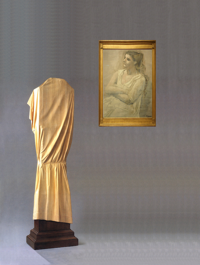 Objects of art and craft are commonly found in rooms whose interiors are mutable, shaped and re-shaped over time depending on the choices made. To capture the impermanent nature of interiors, the background for the pairing of the objects can be established with graphic simplicity through expressive use of lighting and hanging panels or drops with calligraphic brush strokes and paint to simulate perspective and spatial relationships.