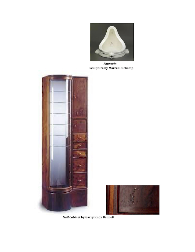 In the accompanying catalogue and wall legends, the curators put forward their reasons for pairing the artisan and artist which will reveal the common ground connecting the furniture and the art. The curatorial accounting for the pairings should provide a sense of “just rightness” to the pairs on exhibit no matter how disparate, at first sighting, their connection seems to be. Imagine, for example, a banner flying outside The Met with images of Marcel Duchamp’s Fountain and Garry Knox Bennett’s Nail Cabinet on it,