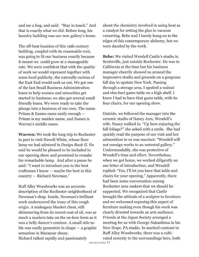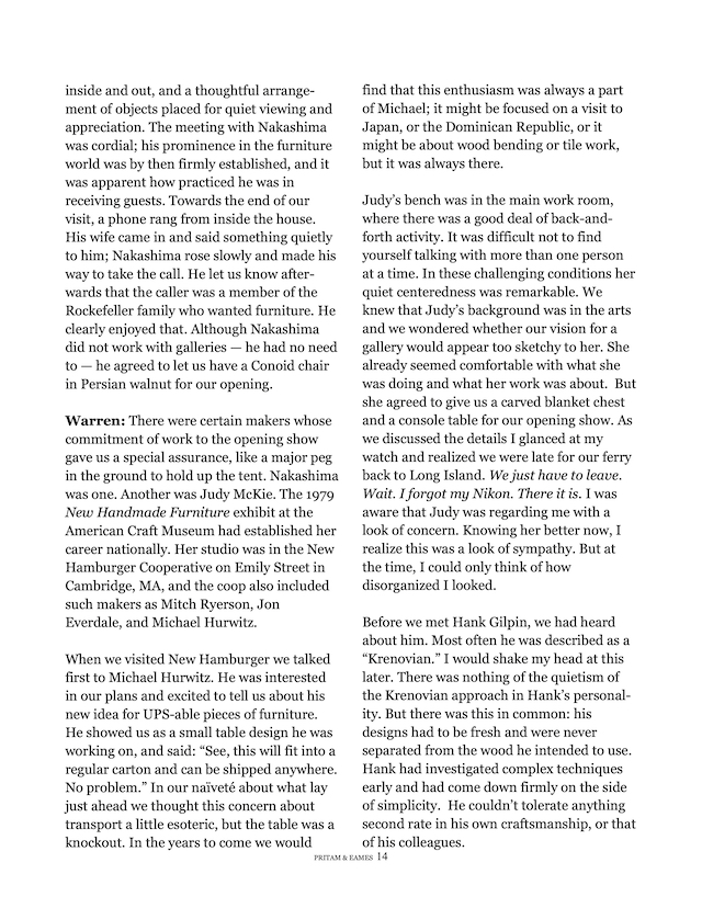 In 1991, to celebrate their 10th anniversary, Pritam & Eames decided to publish a collection of interviews from the woodworkers who were most integral to the success of the gallery. The interviews were completed, but for various reasons, the interviews were not published – until 2014.