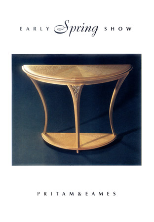 Throughout the 1990s, Pritam & Eames continued its mix of group, featured, and one-person shows. It also initiated the P&E Editions series. By this time, the furniture makers associated with the gallery had evolved distinctive, well-defined styles in their work, which they continue to refine throughout the 1990s. Explosively new and original work by two furniture makers emerged during this period: Kristina Madsen in the mid-1990s and Brian Newell at the end of the decade. By 2001, Pritam & Eames felt fortunate to have been in place for over 20 years, to have hosted a consistently high level of studio work and, also, to have been the beneficiary of a loyal and discerning public.