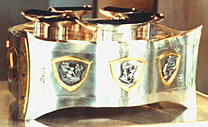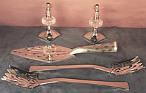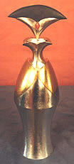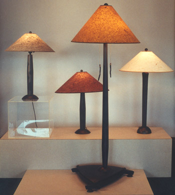 The Hilliards sent two lamps for the anniversary show; Janene's Ivory Reed Lamp was extremely well received, and stands close in accomplishment to Noel Hilliard's earlier (see 1997) Queen of the Nile lamp. The Ivory Reed Lamp sold twice in the opening week after Janene agreed to repeat the lamp. Noel Hilliard's Tapaintana Lamp was also well received. These Hilliards lamps are considerable craft objects; the individual bronze fabrication as well as the construction time for the lamps makes them craft objects of the highest order.