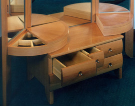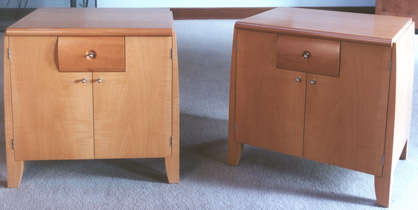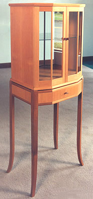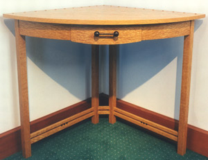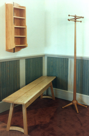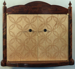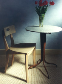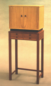 Absent, though, to any considerable extent in this Walker work is an obvious reference to his mentor, James Krenov. In fact, the curved and aerodynamic quality of his side table and his solid fan-backed dining chair seems more in line with the thinking of the Finnish-born architect/designer, Eero Saarinen, or even Jere Osgood. Still, Walker's maple Silver Cabinet does reflect Krenov's attention to material as a major source of inspiration.