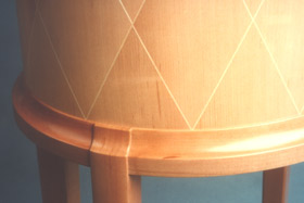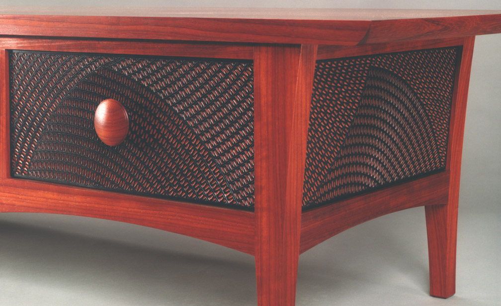 Julie Godfrey was trained by James Krenov at the College of the Redwoods, and apprenticed with Silas Kopf, where she learned her marquetry skills.