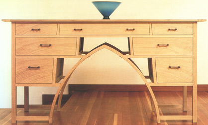 In order for the spec makers to realize their artistic goals, a gallery system was needed to present, promote, and market their work. It would take time to develop this new marketplace, but by the mid-1980s there were signs of its early strength. Also, it can be said that studio furniture benefited from the post-modernist movement of the times because that decorative arts vogue provided a broader context in which to place it. As one furniture maker notes, “We were almost fashionable in the '80s.” In the 1990s, the saga of studio furniture unfolded with the emergence of New York galleries that sought to have furniture accepted on the same terms as fine art. It would be fair to say that the partners’ representation of furniture as furniture was, to some degree, overshadowed by what went on in New York during the halcyon art-boom days of the 1990s.
