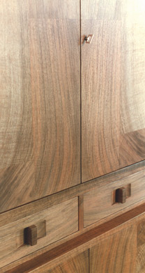 There is more ample space for serving pieces beyond the doors. Narrow drawers are also included in the bottom of this space; not surprisingly, their width is asymmetrical, a sure Krenov touch.