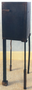 The Spider Cabinet brought Brian Newell's work to the attention of a knowledgeable public, both clients and his peers. The design of the cabinet's compound curving brick-built carcass focuses on the center of the facade and its pierced carved grill. The free hand carving of the grill is a significant embellishment in this piece; this kind of carving has been a strong element historically for Newell (see his tall cabinet 1987). The Spider Cabinet's six long legs and sprung stretchers give the piece considerable tension.