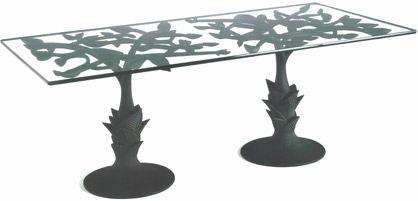 Fran Taubman - Forged Steel, Bronze, Glass Vine Mirror and Vine Console