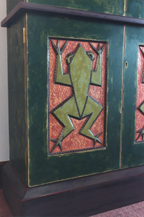 Poplar, monotypes under glass, milk paint "Family Tree" Cabinet