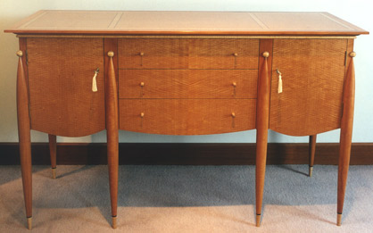 Over the years, there will be two more of these cabinet/sideboards to come from Walker’s shop to the gallery. It is interesting to study the different design solutions he employs in each cabinet to visually integrate the line of the leg into the bottom of the cabinet. |