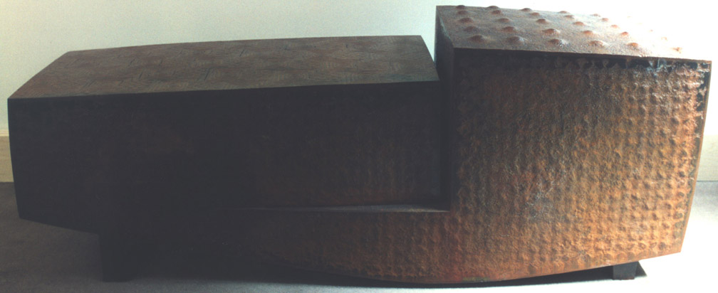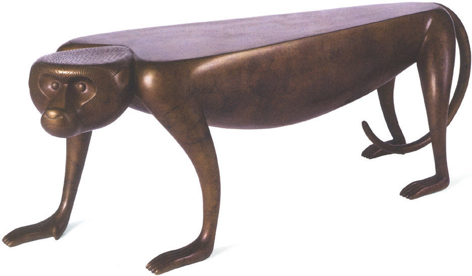 NOTES: This is the third one-person exhibit for Judy McKie that the gallery hosted, and it concluded a benchmark season. The announcement piece, the Jaguar Side Table, was the polychromed wood prototype for one of the two bronze edition pieces in this show. This is one of the few times that McKie includes a wood prototype in an exhibit. The other bronze, the Beast Bench, was introduced earlier and described as part of P&E's 10th anniversary exhibit in May, 1991. As said earlier, the Beast Bench remains one of McKie's strongest bronzes, one that exudes a primal, emergent force.