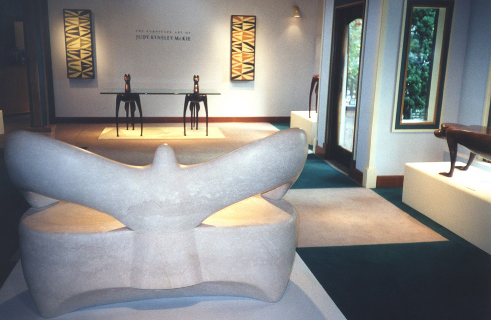 It is difficult for the partners to talk about the 1990s without talking about Peter Joseph, their client of nearly ten years. In November 1989, at the Quilted Giraffe Restaurant in New York City, Joseph proposed that the partners join him to create a New York gallery. Initially, the three discussed a partnership, but it became clear that their views for the direction of this gallery were divergent. The partners stepped aside, and Peter Joseph opened his Fifth Avenue gallery in New York in 1991. Many eyes were trained on this event. For those on the roster, as well as for those who wanted to be, this gallery venture seemed like a long-awaited validation of their artistic worth. In an important sense, the next moment in studio furniture’s dialectic was played out within the white walls, hardwood floors, and fine arts setting of this urban gallery. There, the work of some makers looked at ease, while others seemed out of place.