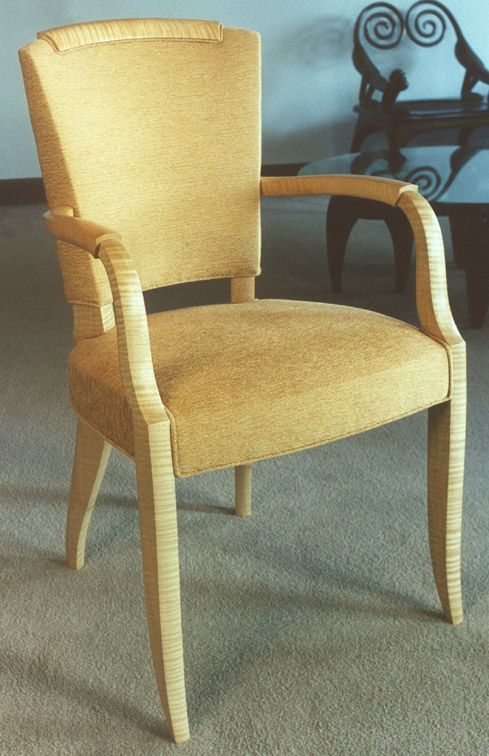 Tim Philbrick - Curly Maple, upholstery Grecian Couch