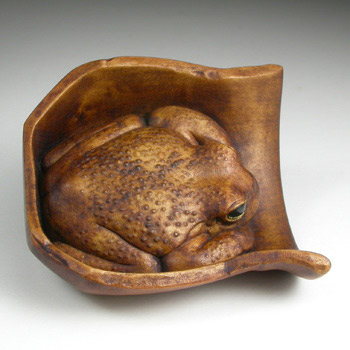 Fish in Boxes by BRIAN NEWELL: Carp: Boxwood; longleaf pine. Lookdown: Boxwood; isu noki. / Flounder: Boxwood; teak. |