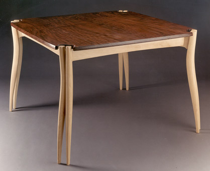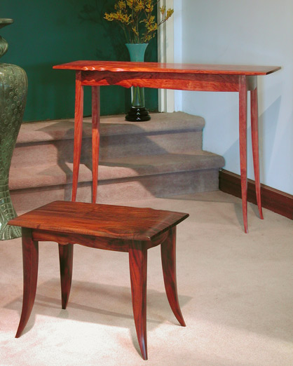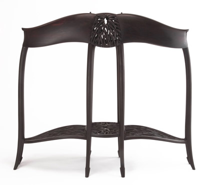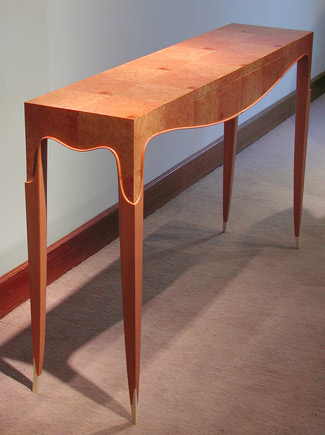 The Foyer Table by Andy Buck is a taller version of a table idea he originally introduced at side table height. Its three dimensional perspective produces a dynamic viewing from any approach. This is a balanced and sophisticated form from an experienced artist-craftsman and the added height makes the piece ideal for a foyer table. | |||||