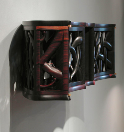 Stacked Boxes by KRISTINA MADSEN: Pau ferro, silk. |