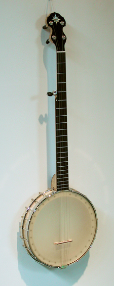 Banjo by RICHARD SCOTT NEWMAN Curly Maple, Ebony, Brass, Mother-of-Pearl. 38”H x 11.75”W x 3.5”D |