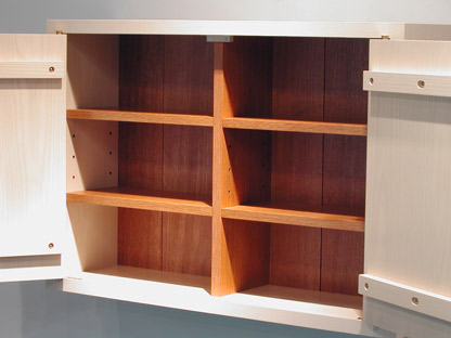 Collector's Cabinet: Japanese elm (zelkova), Spanish cedar, silk, copper pulls. |