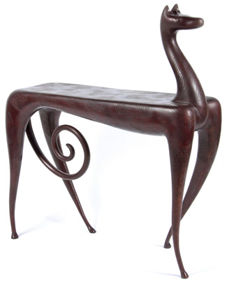 Gazelle Table by JUDY KENSLEY McKIE Mahogany, paint, glass. 34”H x 60”W x 18”D |