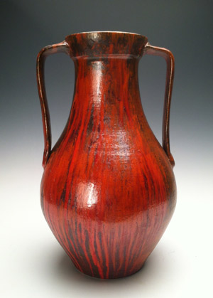 | 2-Handle Buzzard Vase Chrome red glaze. Made from wild local clay. 15"H x 8.5"W x 8.5"D |