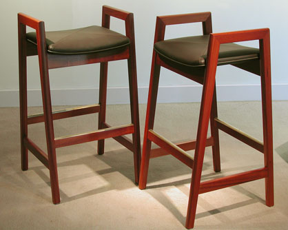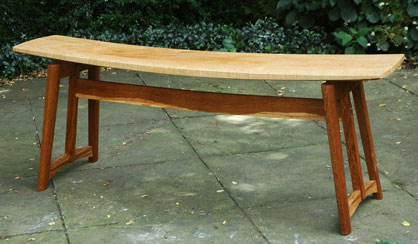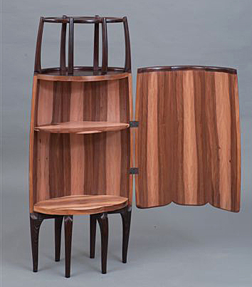 About Hucker, Makepeace says: “I have long admired Tom Hucker's furniture -- his approach contrasts with mine in his choice of exotic timbers, but he achieves extraordinarily poetic forms with an economy that is delightful.” Hucker states: “When I was young, John Makepeace was this mythical figure, this sublime master craftsman and design innovator on the other side of the Atlantic. His work is very ‘full’ to me, by which I mean the craftsmanship is exceptional, the underlying concepts are focused and firm, the designs are carefully articulated, and the details are high notes floating above these structures. Makepeace’s work always makes me smile -- it’s the ‘Damn, he’s good’ smile.” |