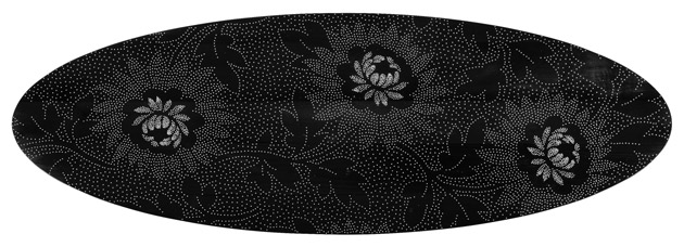 | Oval Nail Table Wenge, aluminum nail inlay. 16”H x 72”W x 25”D |