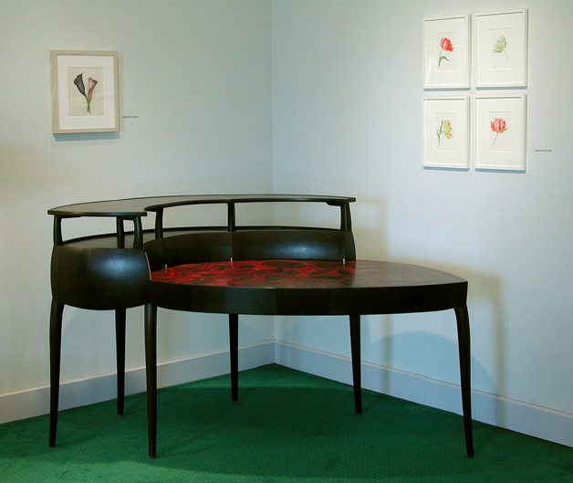 | In 2012, Pritam & Eames began featuring the work of three East End artists in an ongoing series called Art at Home. The introduction of Linda Capello’s figure drawings in conté crayon and charcoal, Aubrey Grainger’s landscape paintings in oil, and Karen Kluglein’s botanical studies and still lifes in watercolor over vellum gave the gallery a chance to demonstrate the compatiblity of fine furniture and fine art are and how they come together naturally in the home. | ||||||