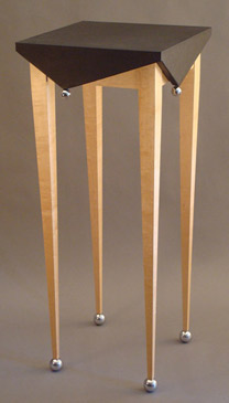 Tall Jester Table by TIM WELLS Maple, red leather, lacquered steel. 35.5"H x 25.5”W x 13”D |