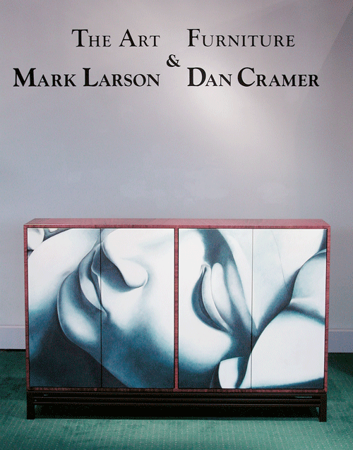 | “I don’t like making things that are conventional and I don’t like using techniques that are purely traditional. I really think that there is always a better answer,” Makepeace states. His Zebras pair of cabinets, also in the summer show at Pritam & Eames, demonstrates his unconventional approach to furniture. The Zebras cabinets are Makepeace’s first involvement in marquetry, where he’s created light and dark with pale, dense holly and open-grained black oak. The interiors, with drawers and shelves, are burnished scarlet lacquer -- red is Makepeace’s favorite color. The zebras are seen either as a formal pair placed symmetrically, or, more informally, wandering in open space. | ||||||