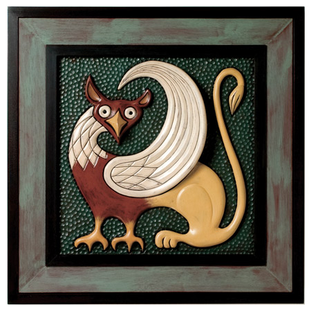 | Griffin Cabinet Carved Mahogany, Milk Paint. 21"H x 21"W x 4 "D |